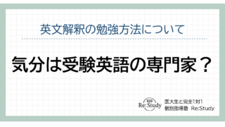 こんにちは!個別指導塾Re:Study講師の伊藤です。英単語、英文法の話に続いて、今回は英文解釈の勉強方法についてお話していきます。そもそも英文解釈とは単語、文法をしっかりと学習し、自分の力としてある程度の水準に達したら、英文解釈の力を伸ば...