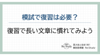 こんにちは!個別指導塾Re:Study講師の伊藤です。皆さんの中には、学校の定期試験以外の試験を受けたことがある人はいるかと思います。河合塾や駿台、東進といった大手予備校が開催しているものがほとんどで、マーク式、記述式など様々な形式の模試を...