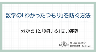 こんにちは!個別指導塾Re:Study代表の根﨑です。今回は、「数学の『わかったつもり』をどう防ぐか?」というテーマでお話しします。結論から言います。「分かる」と「解ける」は、まったく別です。ここを勘違いしていると、どれだけ勉強しても成績は...